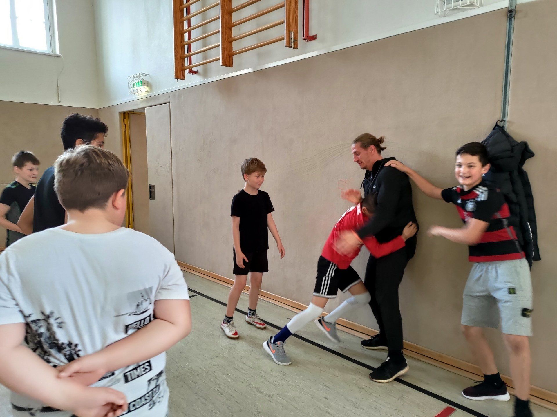 For class 6b, it was also time for #lowkicks today. Mathias from Bazuka Gym and Steve from Tigers Revlution coached the students today on the topic of bullying and de-escalation. Especially in everyday school life, it is important to stand by one another, to be a team and to support one another. Because any kind of violence is just shit, hurtful and leads to more violence.
