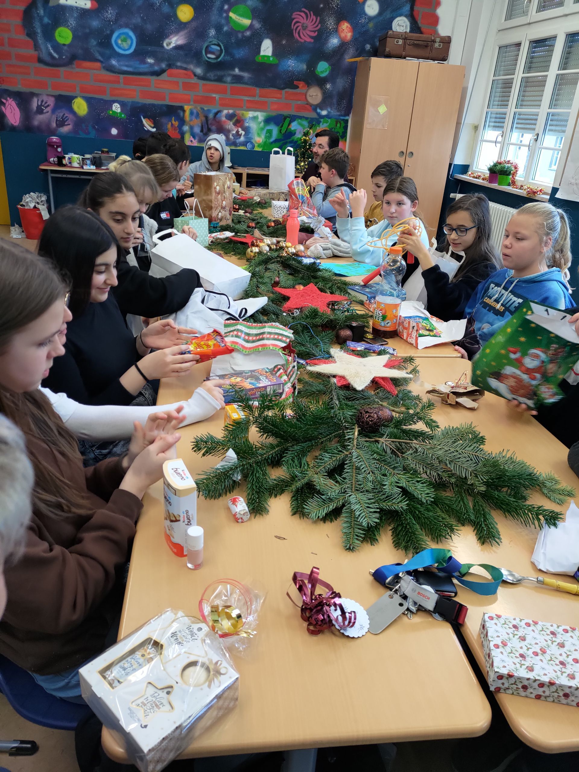 In den Weihnachtsprojekttagen (14.12-16.12) liefen die Vorbereitungen für den ersten Weihnachtsmarkt am 19.12.2023 auf Hochtouren. Es wurde fleißig gebastelt, gebacken, geprobt und natürlich auch Blödsinn gemacht.