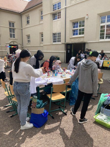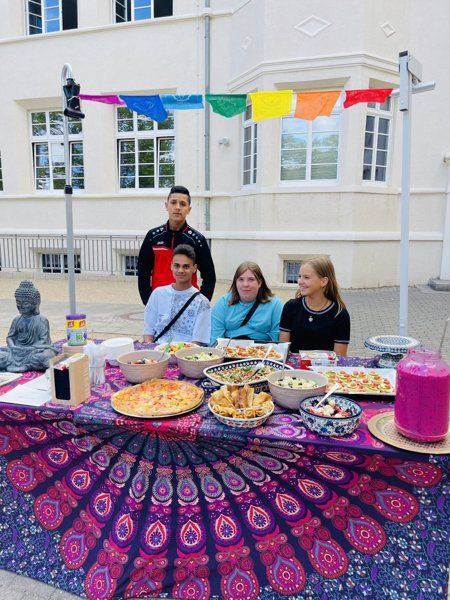In addition to the bouncy castle, fencing, black light theater and face painting, there were of course also refreshments. The international café offered food from different countries and a juice bar provided the necessary refreshments. T-shirts could be painted and canvases for our school building sprayed. There was also a small escape room and much more.