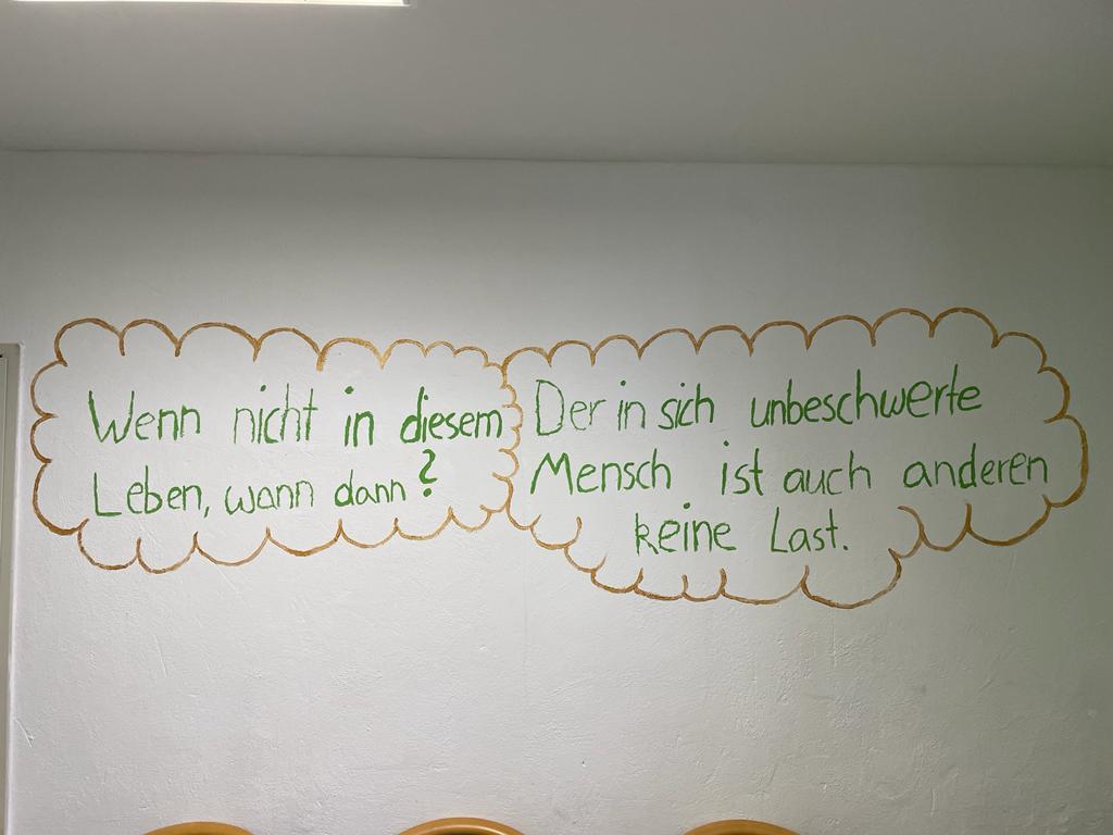 Gemeinsam mit dem Schulsozialarbeiter Herr Zimmer verschönerten sie in ihrem eigenen Projekttag unser Schulgebäude mit Sprüchen und jeder Menge Farbe. Im Anschluss gab es Pizza für alle. Auf das Ergebnis können unsere fleißigen Schülerratsmitglieder stolz sein!