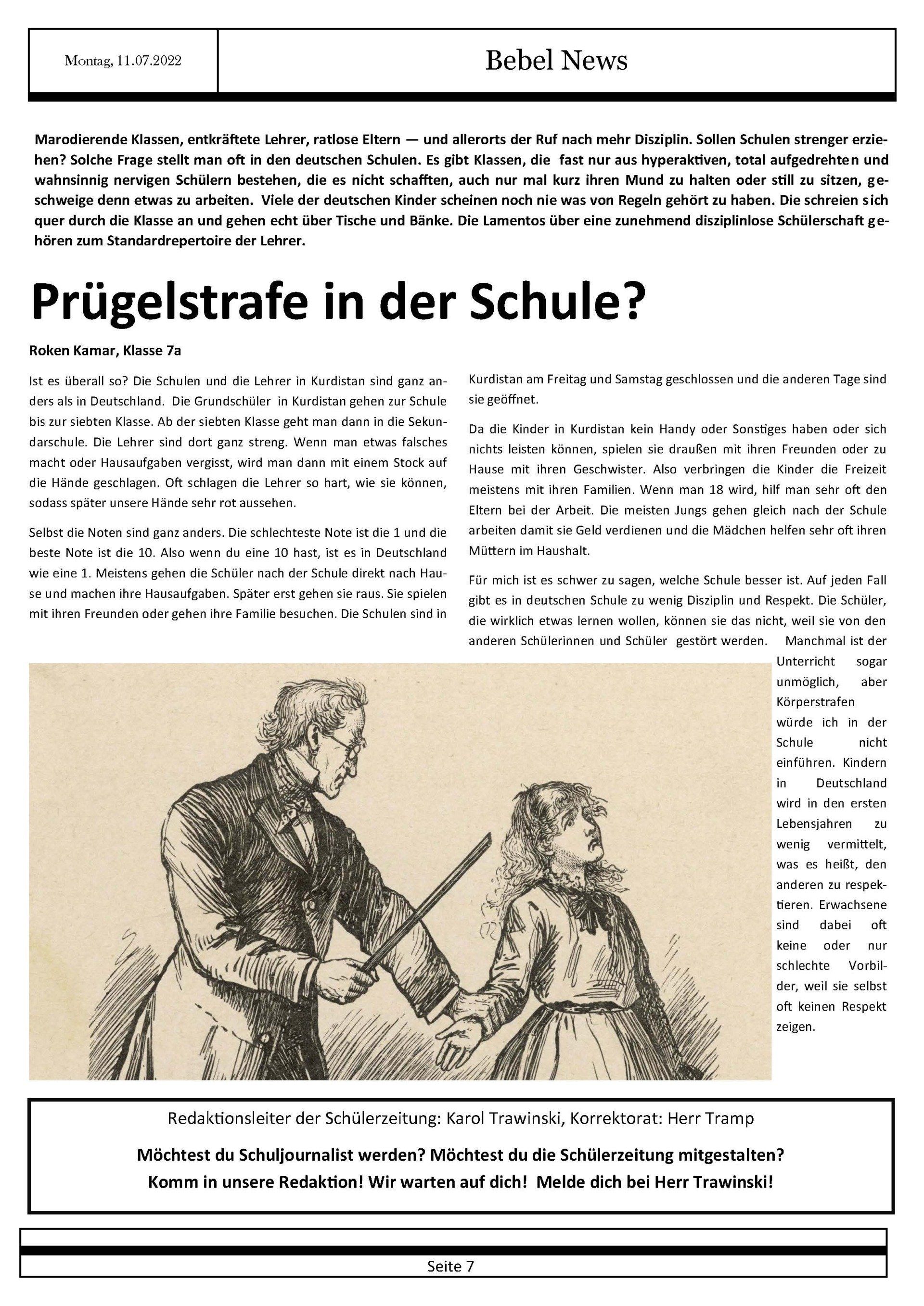 Am 11.07.2022 passend zum Schul-Sommerfest erschien die allererste Ausgabe der "Bebel News".