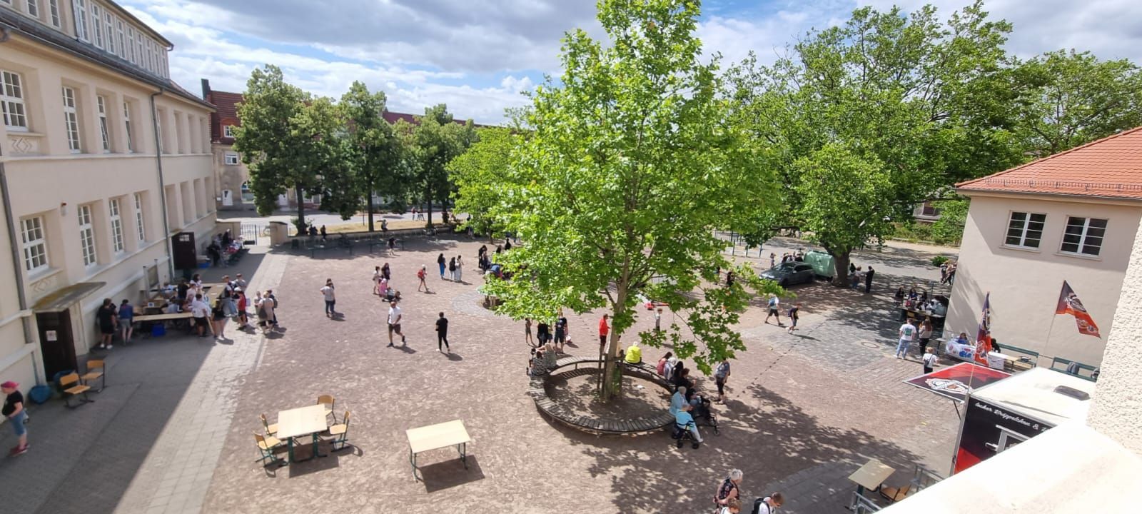 Відвідувачі мали змогу дивуватися стендам, оформленим класами. Пропозиції коливалися від блошиного ринку до колеса удачі з чудовими призами та кількох кіосків із їжею та напоями. Ви можете реалізувати свою творчу сторону на станціях графіті та гіпсових малюнків. Велика подяка IMO-Merseburg і пожежній частині Leuna за їх велику підтримку.