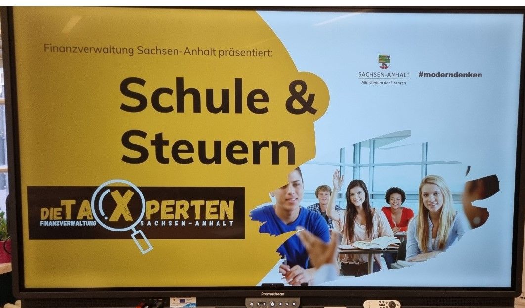 In diesem Projekt der Finanzverwaltung Sachsen-Anhalt vermittelten zwei Finanzbeamtinnen des Finanzamtes Merseburg mit Hilfe von interaktiven Präsentationen und verschiedenen Spielen sehr praxisnahes Wissen zum Thema Steuern und Steuererklärung.